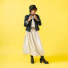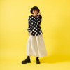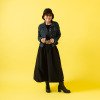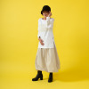 スカートは4枚接ぎにして 脇線を輪にすることで、ボリュームが横に広がらないように配慮したパターンで仕上げています。