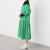 スカート部分には特徴的な斜めの切り替えギャザーを入れ、立体感と女性らしさを演出。