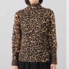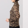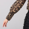 身頃と袖口部分は、ヒョウ柄ジョーゼットにグラフィックプリーツをほどこした素材を使用。