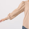 コンパクトな肩幅から繊細なギャザー袖が広がる、華奢見えするシルエットが特徴的。