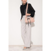 艶感のある異素材コンビで、カジュアルになりすぎない印象に。