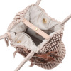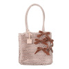 本体は立体的なリボン編みながら、内側にはしっかりとした生地があしらわれており、荷物を入れても伸びにくいよう配慮しました。