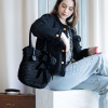 開口部に配されたスナップボタン付きのベルトを留めれば、コロンとしたシルエットで楽しめます。
