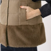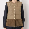 表地に微光沢のあるタフタ素材を使用した、上品な雰囲気を醸し出す中綿入りのジレです。