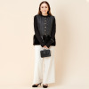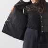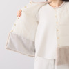前身頃にはゴールドカラーのドットボタンが付いており、開けても閉めても高級感のある見た目を演出します。