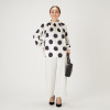愛らしい変形サークル柄が特徴的な、光沢感ととろみのある素材を使用。