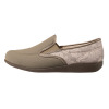 高齢の母が通院が多く、脱ぎ履きがラクなものが欲しいと購入。年齢と共に太ってしまったこともあり、靴を買う時は以前よりサイズを上げていて、今回もそのサイズにしました。まだ試し履き程度ですがゆったりしているとのこと。甲高ですが、支障なく履けるようです。色はベージュで、悪目立ちしない柄が入っていて良いと思います。皆さん仰るように年配の方向けのデザインかなと思いますが、足に良いというスニーカーなどを購入しても、高齢で膝の悪い母にはなかなか履きづらいものが多いので、今回は良かったです。
