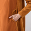 襟の2素材切り替えとステッチワーク、アクセントとなるカーブのついたポケット口により、デザイン性を高めました。