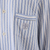 襟周りに光沢感のあるサテン生地をトリミングし、胸ポケットにはワッペンを付けました。