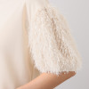 袖はチュール素材で切り替え、柔らかなフェザーのような表情に。