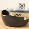 ガラス蓋の淵には湯切り穴が大小2サイズがあり、茹でこぼしも食材の大きさに応じて使い分けできます。