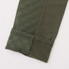 ウエストと前ポケット口には、後ろ身頃と同じ素材を用いて、さりげないアクセントに。