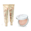 <サンナチュラルズ>より、UVカットクリーム・保湿クリーム・化粧下地クリーム・色調補整の4役を兼ねる、SPF50+、PA++++の化粧下地クリーム×2、お肌にツヤ、ハリ、潤いを与えるホホバエステルを配合し、メイク効果でシミ・シワを目立たなくするハイライトにも使えるフェイスカラーのセットです。