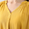 襟や袖口にたっぷりとギャザーを寄せ、立体的なフォルムを表現。