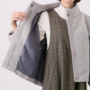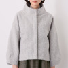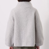 スタンドカラーがモード感を演出し、襟の抜け感が女性らしさを引き立てます。