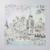 お城の美しい造形美と大輪の花々が調和する、芸術性豊かなデザイン。