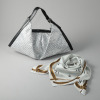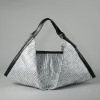 トートバッグは、京都の機屋(はたや)が開発した特殊な生地のダイナミックな華やかさを存分に生かした、“柔らかな三角形”という名のデザイン。