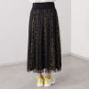 レオパード柄をプリントしたデシン素材の上に肌触りが柔らかなチュール素材を重ねました。