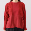 チクチクと感じにくく肌触りの良いケーブル柄ニット生地とプレーンなポンチジャージー生地、さらに布帛生地をコンビネーションしたデザイン。