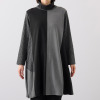 体型をカバーするAラインシルエットながら、前身頃中心の配色切り替えによりすっきりとした印象を演出。