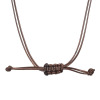 ブラウンのレザー調コードネックレスは、トップのボリューム感に合わせた2本使いで表情を出しました。