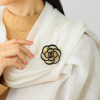 お洋服に上品なスパイスを効かせてくれるカメリアモティーフは、飴色の水牛素材をベースに、黒色の水牛素材のラインを透かして重ねた凝ったつくり。
