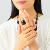 ニュアンスあふれる“ブラック”が印象的なお手元を演出。素材にこだわる大人のジュエリー。