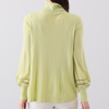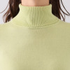 ハイネック部分は柔らかなリブ編みでくしゃっとしても、折り返しても着られるようにデザイン。