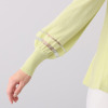 袖口はリブニットで切り替えキュッと絞り、パフスリーブのような立体的なシルエットに仕上げています。