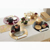 四季の草花をバランスよく配し、ゴールドカラーで立体感を表現したデザインで、テーブルコーディネイトを華やかに彩る一品。