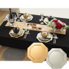 個体差が大きいし、販売数もムラがあり、色々買ってはみたものの、卒業を決意し、もう購入は無いだろうと思っていましたが、去年購入できず諦めた八角皿を発見、また、注文してしまいました。箱はまた大きめで、寝具等表示。いくら緩衝材を巻いていても、輸送時の動きは避けられないと思います。繊細な食器扱いをしてほしいです。今回は、ゴールドムラなくまあまあ綺麗でホッとしましたが、それは表面だけでした。裏側は、そのままの黒。ネットの写真も表側だけで、裏側も載せるべきだと思いました。縁起良い様にと購入したものなので、裏側もゴールドにして欲しかったです。ちょっとがっかりしてしまいました。今度こそ卒業します。最後にゴールドの八角皿、縁起は良さそうなものを購入できて、良かったです。