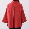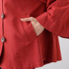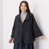 バストサイズが94までとなっていましたが、仕立てが116だったので98の私でも大丈夫でした。肩幅も42と広めで、窮屈では?と気になりましたが、ラグランなので、ジャストサイズでした。夏のワンピに続いて、オカモト商店さんは、2枚目です。ジャケット届いて一目見て、気に入りました。
