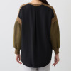 異素材同士をドッキングしたモード感あふれるデザイン。ゆったりとしたシルエットで気になる部分をカバー。