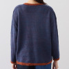 襟、袖口の配色デザインと、さまざまなボトムスに合わせやすいやや短めの着丈がポイント。