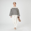 お顔周りがすっきりと見えるよう、ボーダーの配置を工夫しました。