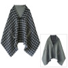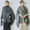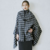 手を通せばケープに、首に巻けばストールに変身する優れもの!さらに無地とチェックのリバーシブル仕様なので、1枚で4種類の着こなしを楽しめます。