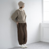 膝あたりの幅は広めに取りながら、裾にかけては絞りを入れた独特のシルエットで、カジュアルながらも品のある印象を演出します。