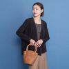 開き部分には、日本製の黒蝶貝ボタンをあしらい、さりげない高級感を演出しました。