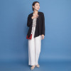 セットインスリーブで袖山が高めのパターンを採用しており、肩にきれいにはまって袖がスッと縦に落ちるため、前を開けて着用してもきちんとした印象を与えます。