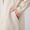 編地と圧縮ニットを組み合わせた異素材ドッキングロングコートです。