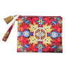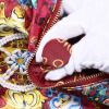 残念ですがポリエステルのプリント素材で、随分とチープに見えます。ファスナーの付け方も、一辺だけで曼陀羅の書いてあるコイン型のシールもついてなくて以前ほど気持ちが高揚しません。