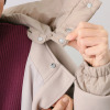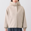 着脱可能なフードと袖口に軽量のナイロンタフタを用いた、中綿入りの暖かなつくりです。