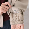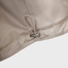 裾には前後に丸ゴムひもを通し、サイドのドローストリングで調整ができ、ボトムのシルエットに合わせて楽しめます。
