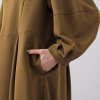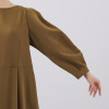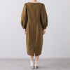 縦切り替えでダーツを取った身頃から、タックを入れた裾へと広がるコクーンシルエットが、エレガントな雰囲気を演出。