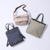 濃紺の型押し3ウェイバッグ、ベージュの大きめトートバッグ、コロンとした濃紺のジャガードお財布ポーチでした