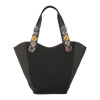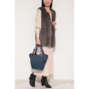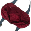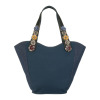 ナイロン生地とデニム生地を切り替えたデザイン。持ち手のフラワーモティーフがキュートなポイントに。