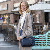 ストラップは長さの調整ができ、斜め掛けでも肩掛けでもサマになるつくりです。