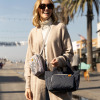 部分的に牛革とファスナーをあしらった、デザイン性と機能性を両立したバッグです。