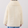 襟元や袖に程良くボリュームを持たせ、身頃にダーツを入れることで、丸みのあるコクーンシルエットを演出しています。