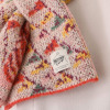 ウール混の糸を用いた、軽やかでふんわりとした仕上がり。個性的なデザインで装いに華やかなアクセントを。